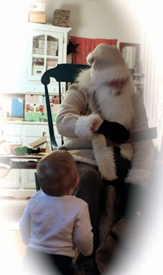 Och tomten han kom i år igen. Samma ljusa, trevliga tomte. Vi har tur att ha en så fin tomte som kommer varje år. Barnen börjar bli stora men någonstans hör det ju liksom till att det ska komma en fin tomte. Liten var inte alls rädd, han ställde sig där och tittade på tomten och undrade när det var hans tur att få ett paket.