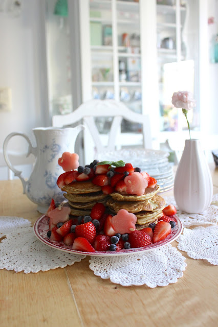 Vi åt soppa till middag i lördags. Och som alltid när vi äter soppa blir det pannkakor. Eftersom jag tycker det där med att steka pankakor inte är så värst kul då det tar sån väldans lång tid brukar jag oftast göra amerikanska som går så mycket fortare att göra.